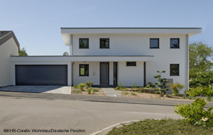 Bereits zum 2. Mal verwirklichten die Bauherren ihren Traum vom Wohnen mit KHB-Creativ Wohnbau. Das Massivhaus, in Hanglage errichtet, strahlt innen wie außen modernes und zugleich südländisches Lebensgefühl aus. Damit erfüllten sich die Eheleute den Wunsch nach mehr Raum und einer gehobenen, luxuriösen Ausstattung.